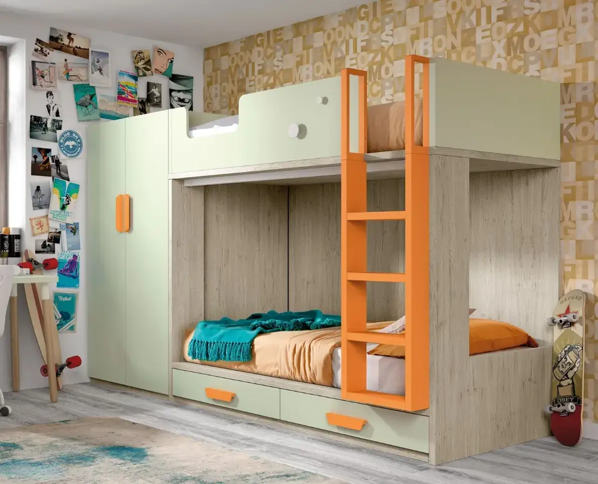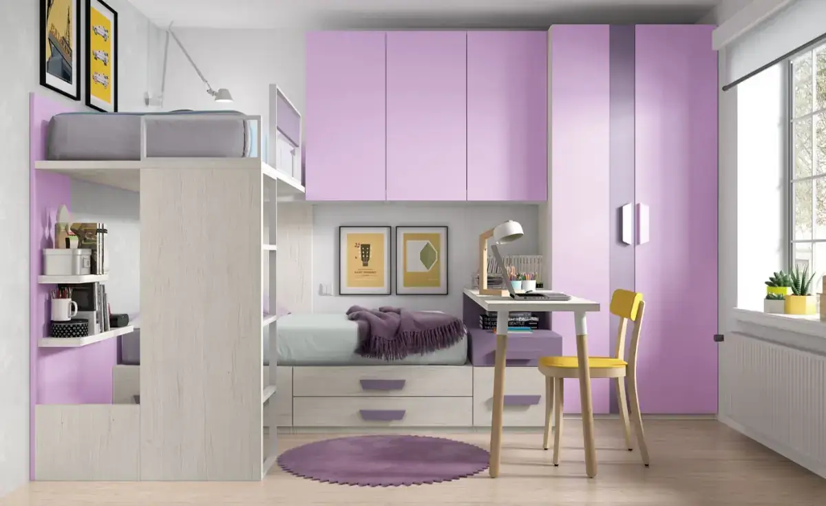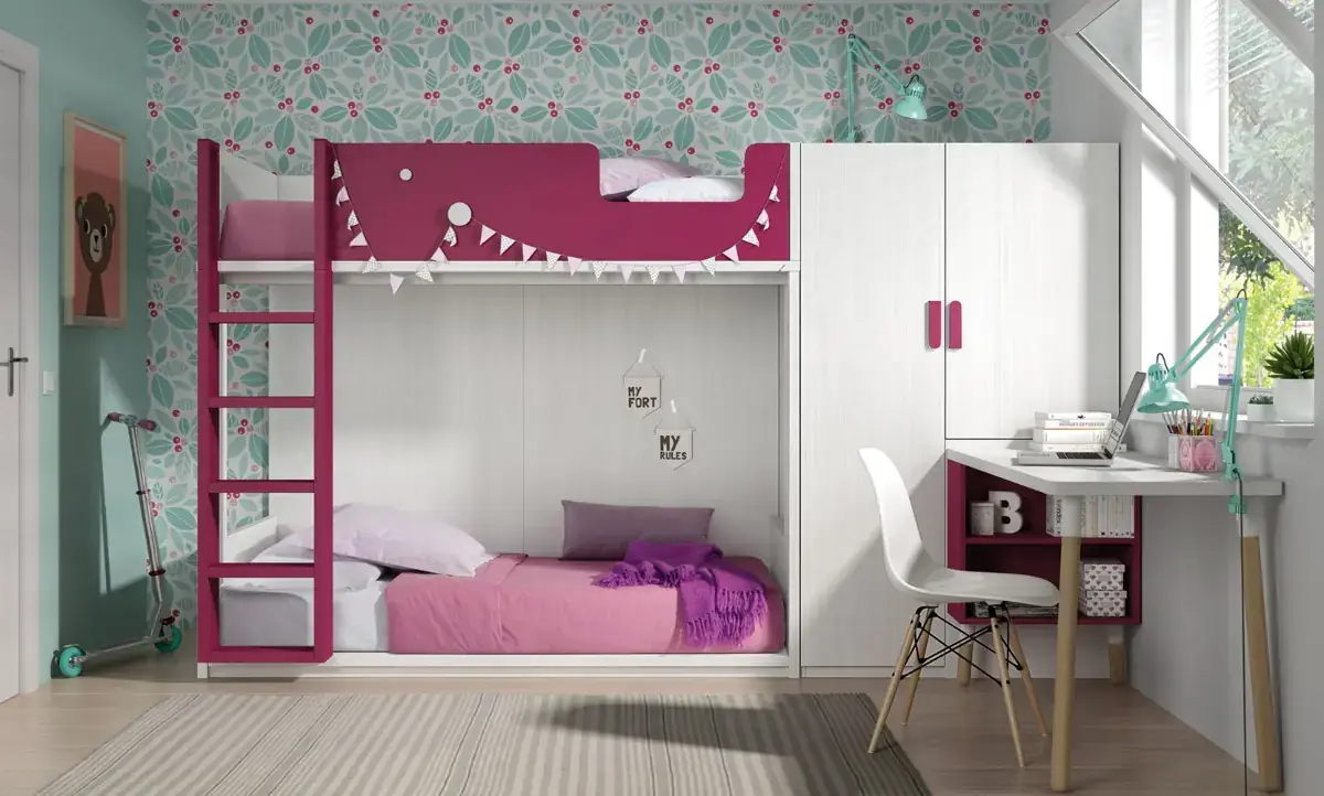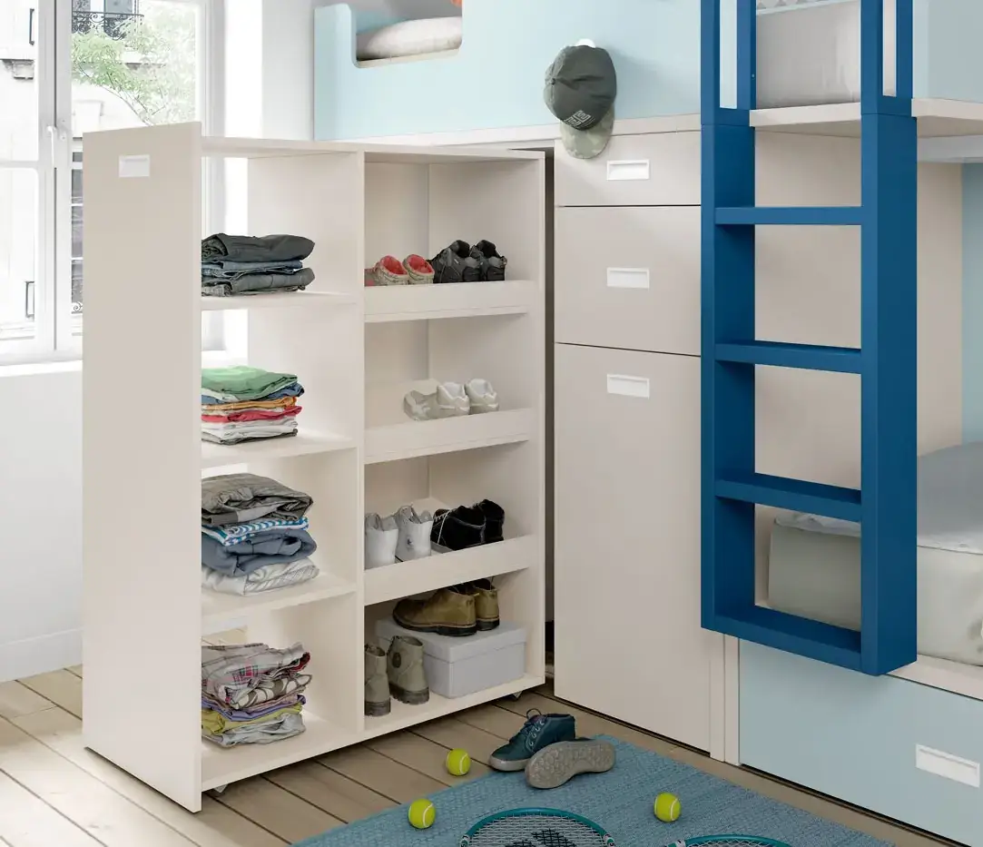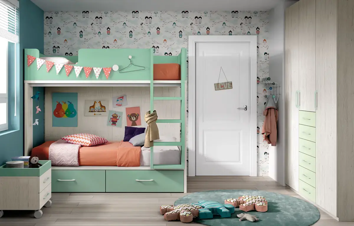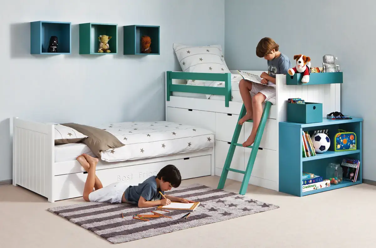 «Compartir habitación no tiene porque ser por necesidad y si una elección» El espacio compartido entre hermanos, incentivará los vínculos afectivos entre ellos y ayudará a generar una actitud más tolerante, respetuosa y considerada hacia los demás. A continuación, mostramos varias soluciones para dormitorios compartidos. Desde literas hasta camas individuales a diferentes alturas, pasando por trenes y literas abatibles, todo ello añadiendo espacios de estudio y soluciones en los rincones más insospechados dando valor al mobiliario a medida.