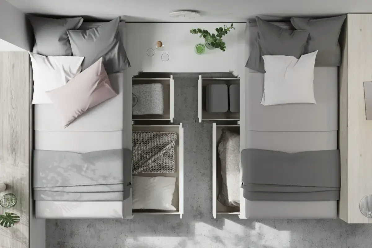 Bienvenidos a nuestra nueva colección de mobiliario para dormitorios juveniles y senior. En ella encontrarás soluciones agrupadas en diferentes colecciones de armarios, camas, literas, librerías, canapes, escritorios y auxililares.